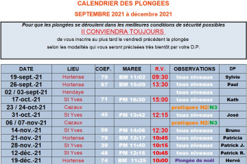 • Calendrier des plongées et nouvelles du club 12 mars 2024